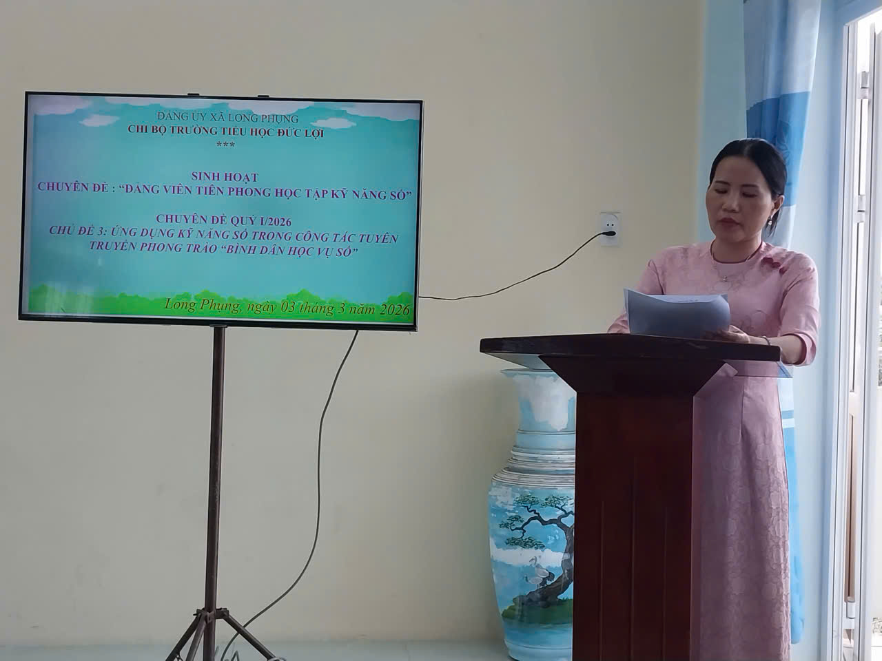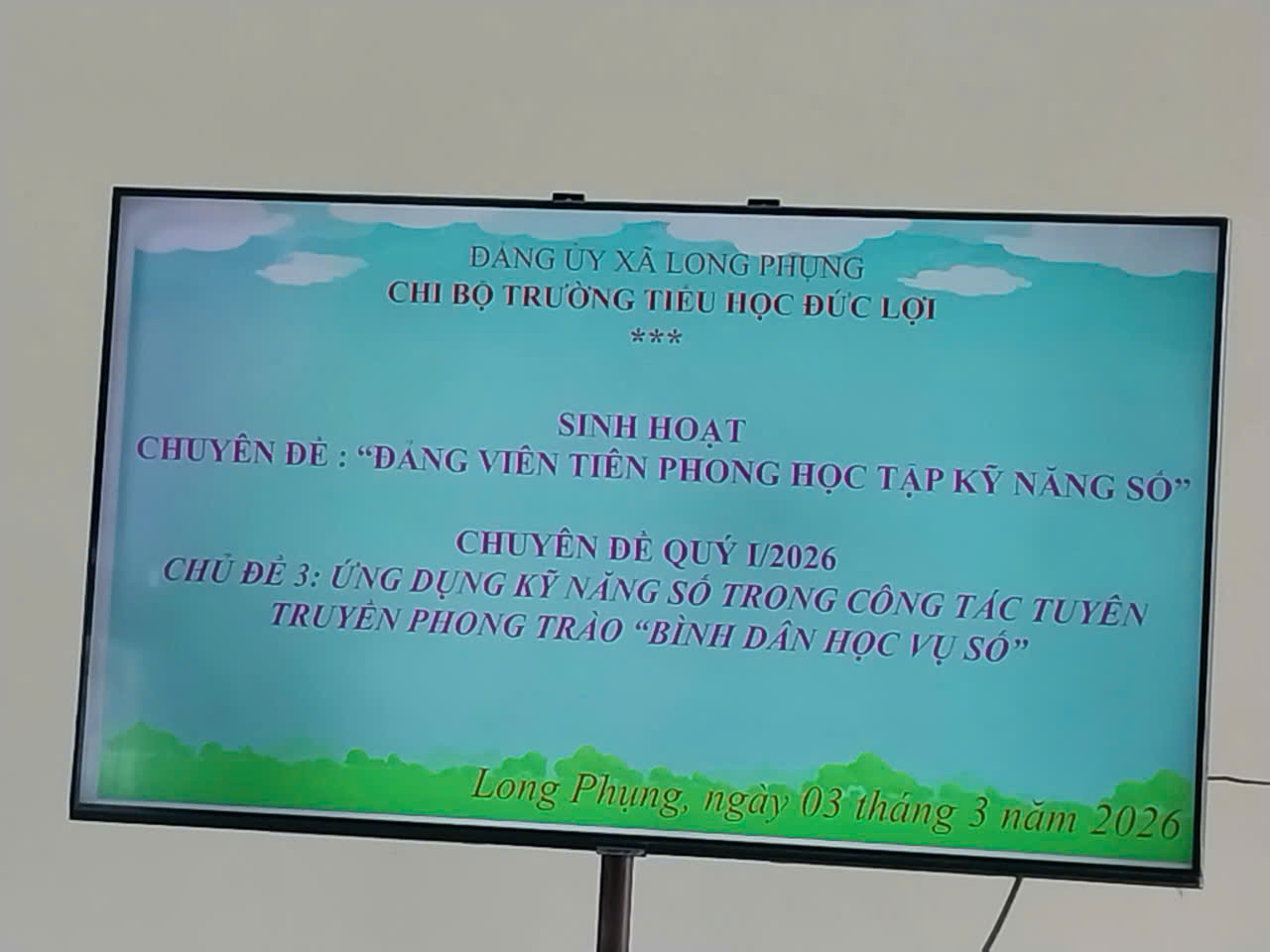 Vào lúc 15 h ngày 03.03.2026, Chi bộ trường Tiểu học Đức Lợi tổ chức buổi sinh hoạt chuyên đề “Đảng viên tiên phong học tập kỹ năng số” quý I/2026-Chủ đề 3:Ứng dụng kỹ năng số trong công tác tuyên truyền phong trào “Bình dân học vụ số”.