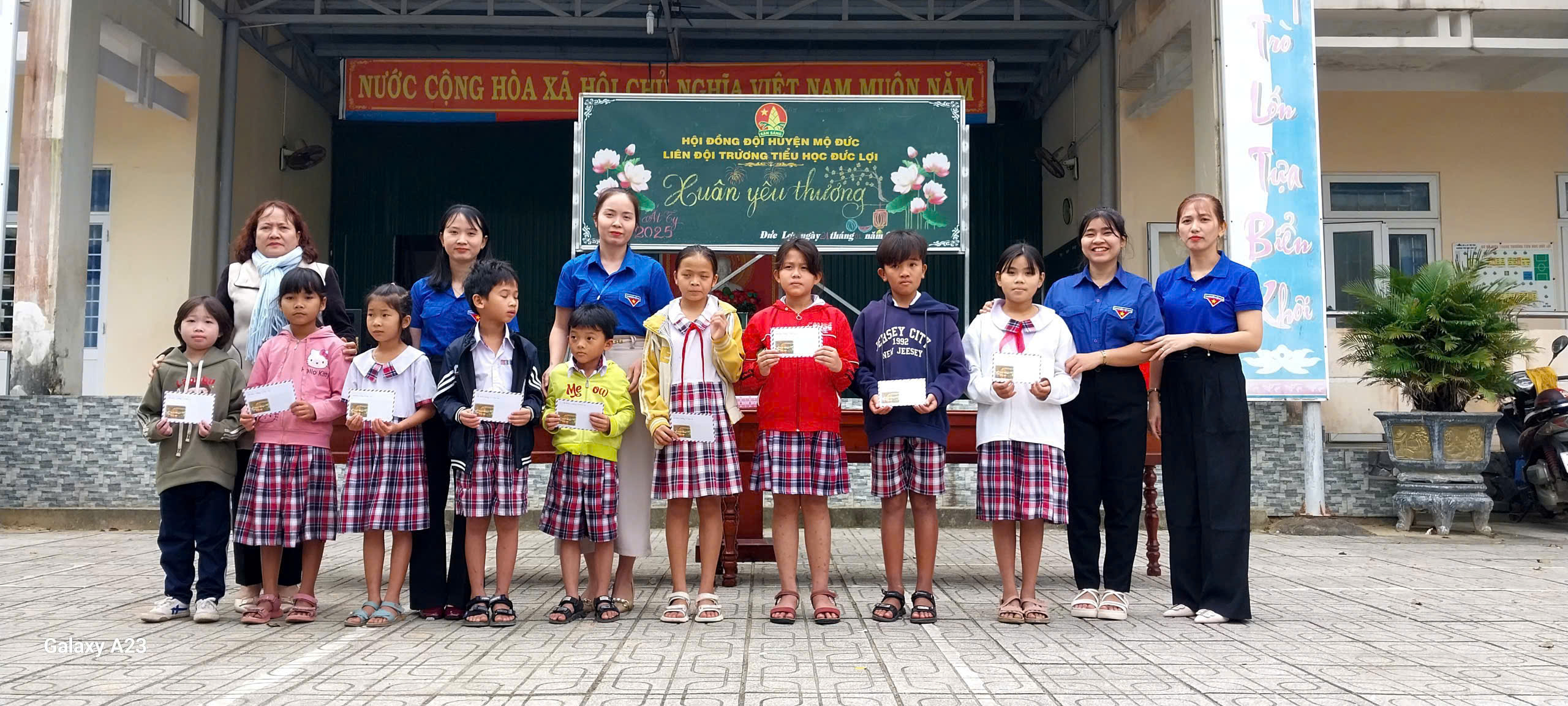 sáng nay ngày 21/01/2025 cùng với nhà trường, Chi đoàn trường Tiểu học Đức Lợi đã tặng các xuất quà từ chương trình gây quỹ “gian hàng tết, xuân yêu thương” với số tiền 2.000.000 đồng cho 10 em học sinh có hoàn cảnh khó khăn nhân dịp tết Nguyên đán 2025. Mỗi xuất quà là một bì thư 200.000 đồng. Chúc các em và gia đình đón một cái tết ấm no.