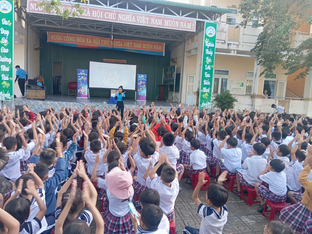 Chiều nay, ngày 11/12/2025, trường Tiểu học được đoàn làm phim thành phố Hồ Chí Minh tới chiếu phim. Đầu tiên là chia theo các nhóm khối lớp khác nhau, mỗi khối là một anh chị phụ trách với nội dung trò chơi vui nhộn. Học sinh rất hứng thú với các trò chơi. Kết thúc trò chơi học sinh nhận được rất nhiều quà tặng Kun. Tiếp đến học sinh sẽ được xem phim với nội dung là phòng tránh đuối nước, kết thúc xem phim, học sinh trả lời câu hỏi, trò chơi “đuổi hình bắt chữ” , tuyên truyền phòng tránh đuối nước. Rất rất nhiều quà tặng dành cho các bạn, đặc biệt là đoàn làm phim rất vui tươi, tài giỏi, hy vọng sẽ có nhiều chương trình bổ ích dành cho các em. Kính chúc đoàn làm phim mạnh khỏe, chúc thầy trò trường tiểu học ngày càng giỏi giang hơn.