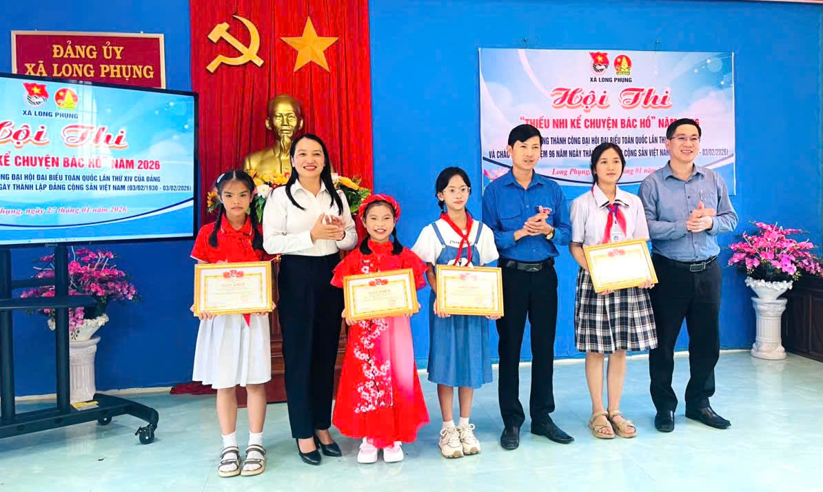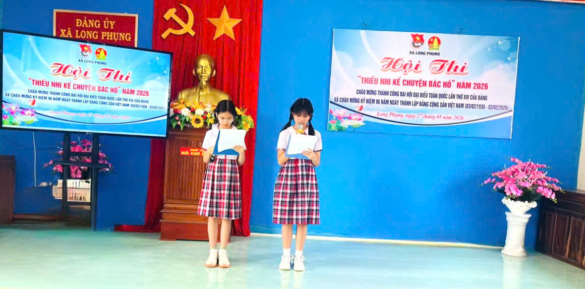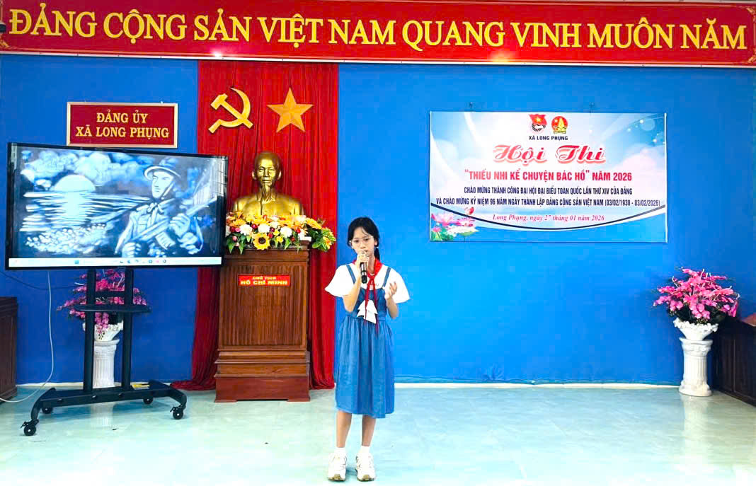 Thiết thực chào mừng thành công Đại hội đại biểu toàn quốc lần thứ XIV của Đảng và chào mừng kỉ niệm 96 năm ngày thành lập Đảng Cộng sản Việt Nam, chiều ngày 27/01/2026 tại hội trường Đảng ủy xã Long Phụng , Đoàn xã-Hội đồng đội xã Long Phụng tổ chức thành công hội thi “Thiếu nhi kể chuyện Bác Hồ” năm 2026.