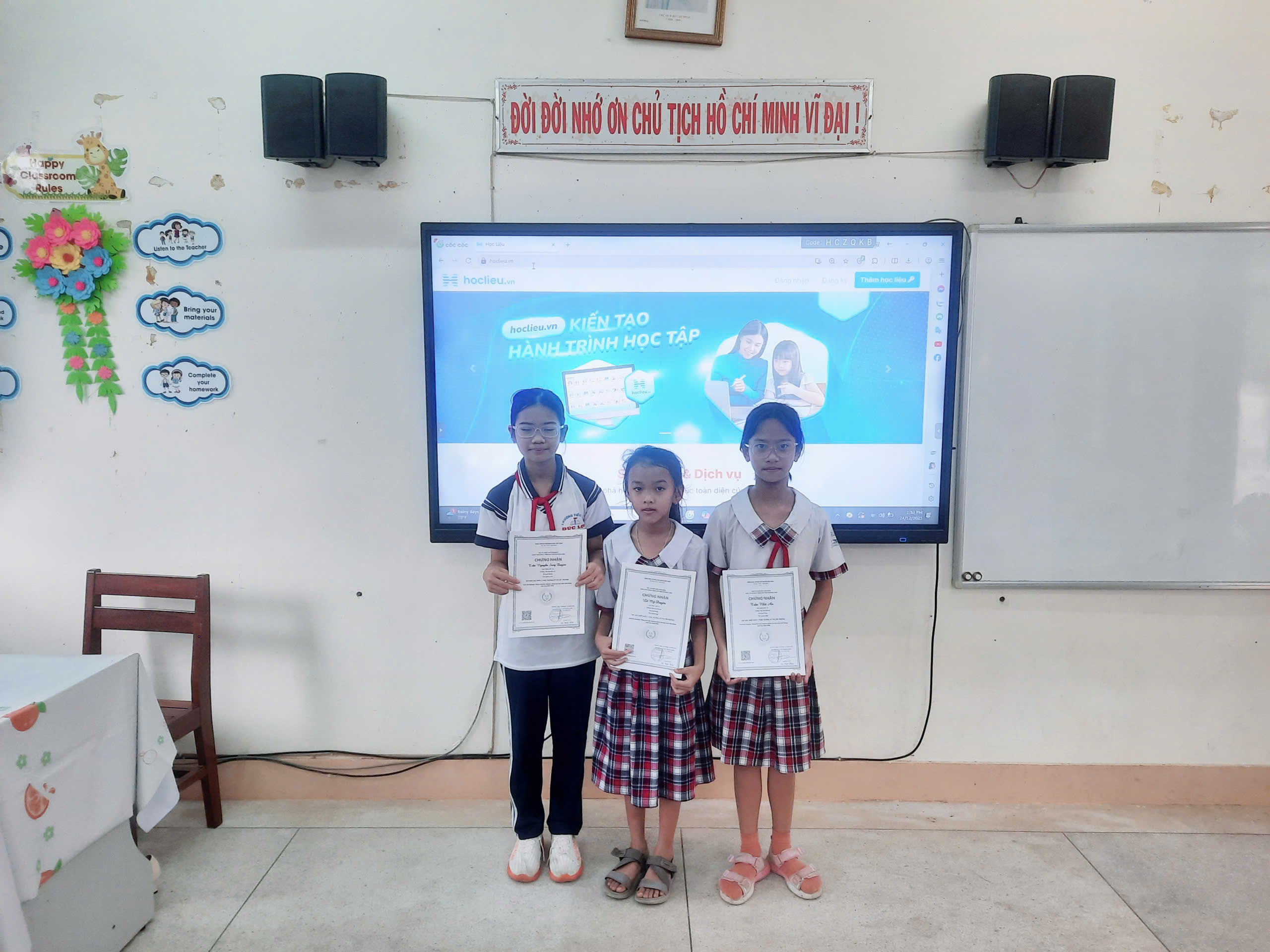 Trường Tiểu học đã có 18 HS tham gia (3 HS khối 3, 8 HS khối 4, 7 HS khối 5) và kết quả đạt được 2 giải Nhất toàn trường đó là em Trần Nhã An lớp 5B; em Lê Mỹ Duyên lớp 3A và 1 giải Nhì toàn trường đó là em Trần Nguyễn Song Duyên lớp 5A. Xin chúc mừng tất cả các em. Mong các em nỗ lực hơn nữa để tiếp tục tham gia tốt ở các kì thi tiếp theo.