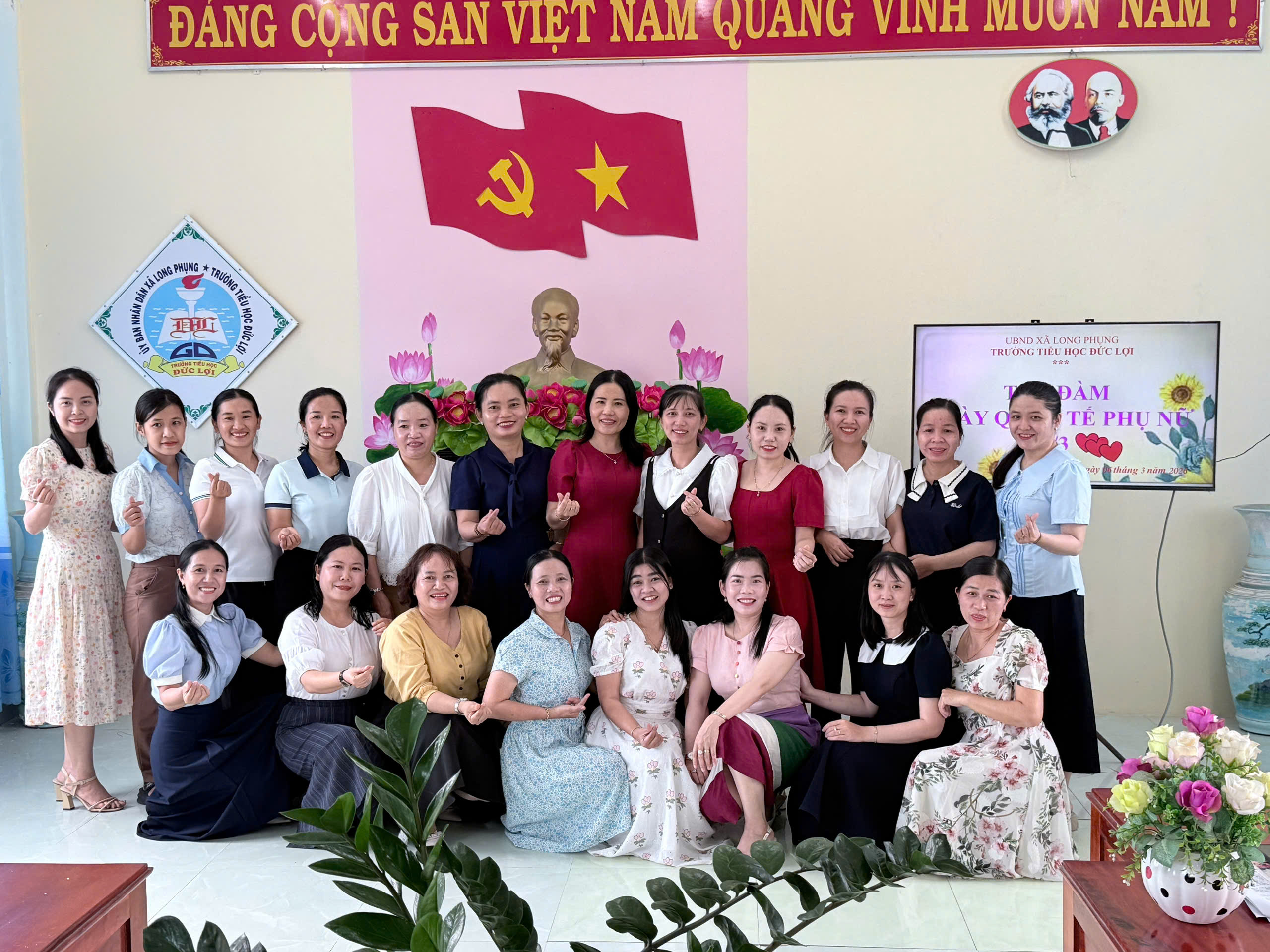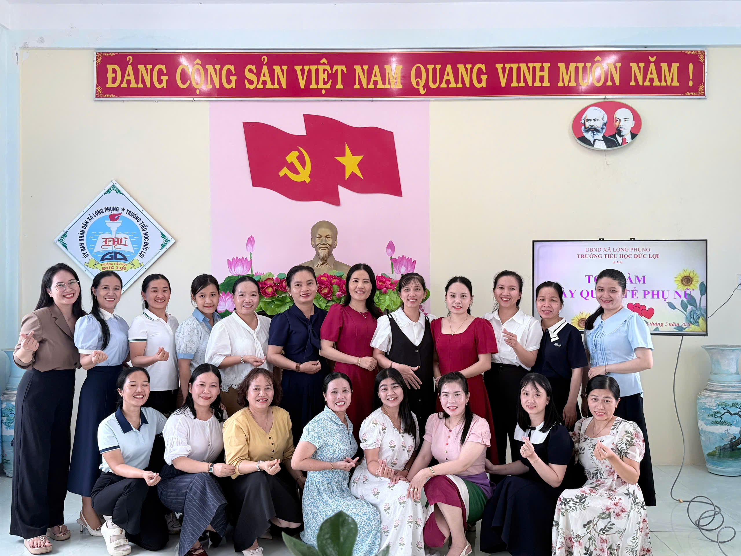 Nhân ngày kỉ niệm Ngày Quốc tế phụ nữ 8/3, chúc chị em nữ trường Tiểu học Đức Lợi vui vẻ, hạnh phúc, mãi là những bông hoa xinh đẹp trong lòng mọi người, xứng đáng 8 chữ vàng mà Chủ tịch Hồ Chí Minh đã trao tặng cho phụ nữ Việt Nam đó là”Anh hùng-Bất khuất-Trung hậu -Đảm đang”.